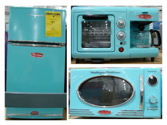 Nostalgia Electrics Vintage-Style Refrigerator – $199.99 Nostalgia Electrics Vintage-Style 3-in-1 Breakfast Station – $59.99 Nostalgia Electrics Vintage-Style 1000 Watt Microwave – $99.99
