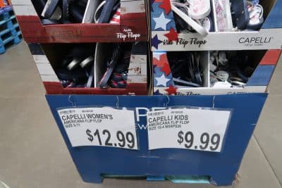 At BJs, I spotted Capelli Women’s and Men’s flip flops for $12.99.