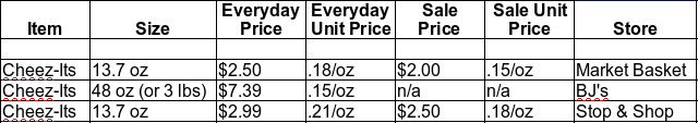 Here is a recent example using Original Cheerios that was recently on sale at Stop & Shop. We will first discuss everyday price at BJ’s, and then do the same scenario using the August BJ’s coupon for Cheerios.
