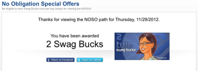 Another place to look for offers is under the Earn category at the top of the homepage. From the drop-down box, choose NOSO (which stands for No Obligation Special Offers).